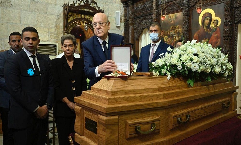 وقد تقدمهم رئيس حكومة تصريف الاعمال نجيب ميقاتي الذي وضع وسام الارز الوطني برتبة ضابط اكبر على نعش الفقيد باسم رئيس الجمهورية ميشال عون وذلك تقديرا لدوره وعطاءاته في الحياة السياسية والوطنية اللبنانية.