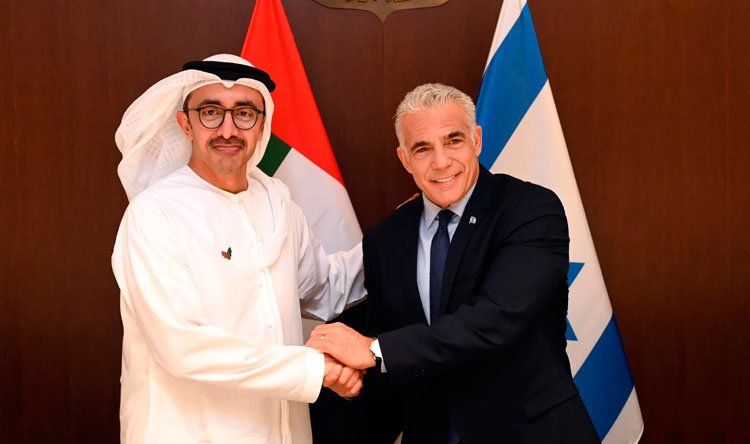 التقى رئيس الوزراء الإسرائيلي يائير لابيد بعد ظهر الخميس، وزير الخارجية والتعاون الدولي الإماراتي الشيخ عبدالله بن زايد في مكتبه في القدس، حيث عقدا جلسة مباحثات فردية ثم جلسة موسعة بمشاركة الطرفين.