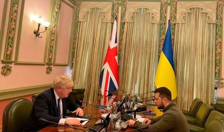 وأظهرت صورة زيلينسكي وجونسون يعقدان مباحثات وجها لوجه، بشأن تطورات الأوضاع في أوكرانيا.