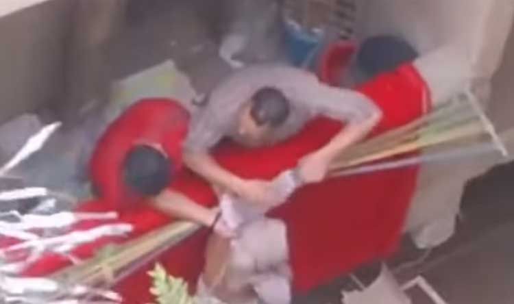 ويظهر في الفيديو الذي يمتد 44 ثانية، رجلاً يمسك بفتاة من يديها وهي معلقة من شرفة، ثم يتدخل رجلان آخران لجذبها وإنقاذها، إلا أن الأول ينهال عليها بالضرب، وسط شجارات وألفاظ نابية.