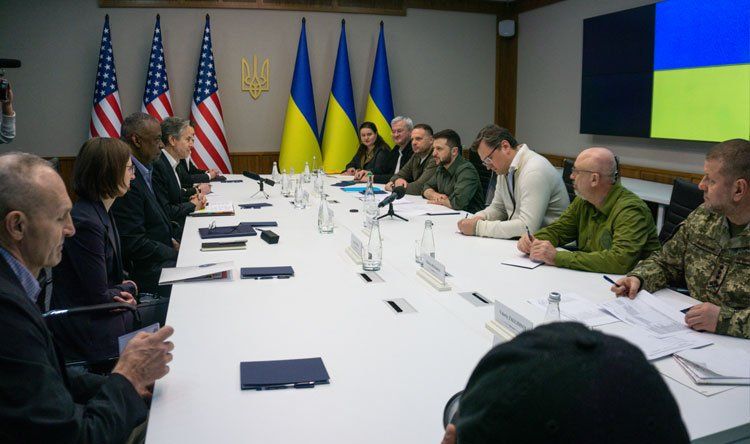 زار وزيرا الخارجية والدفاع الأميركيان أنتوني بلينكن ولويد أوستن، العاصمة الأوكرانية كييف، حيث التقيا لأكثر من ثلاث ساعات الرئيس فولوديمير زيلنسكي ووزير الخارجية دميترو كوليبا ووزير الدفاع أوليكسي ريزنيكوف ورئيس الإدارة الرئاسية أندريه يرماك ورئيس الدفاع الجنرال فاليري زالوغني والسفيرة الأوكرانية لدى الولايات المتحدة أوكسانا ماركاروفا.