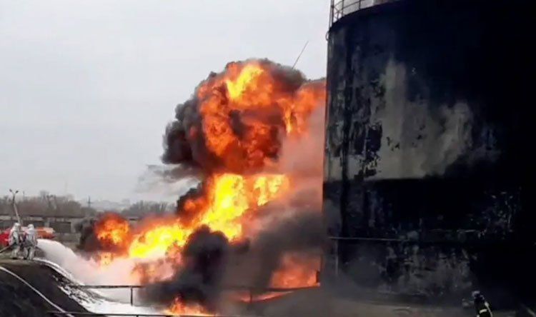 وكتب حاكم بيلغورود، فياتشيسلاف غلادكوف على تلغرام “على الحدود بين ثلاث بلديات، منطقتا بوريسوف وبيلغورود وإقليم ياكوفليفسكي، اندلع حريق في إحدى منشآت وزارة الدفاع”.
