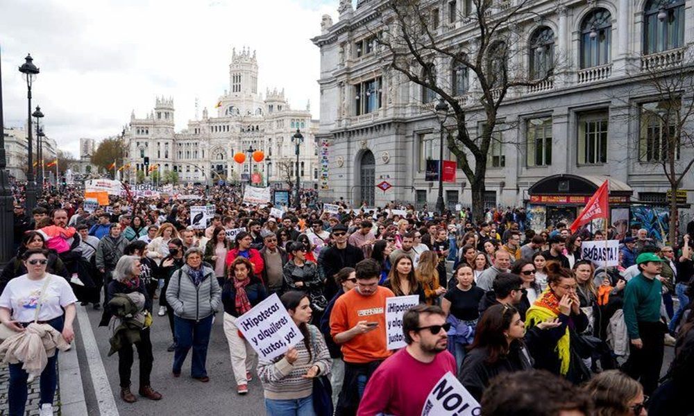عاد المحتجون إلى الشوارع في مختلف أنحاء إسبانيا، بدعم من أكبر النقابات العمالية اليوم السبت، غاضبين من ارتفاع تكاليف الإسكان من دون أي أفق للراحة.