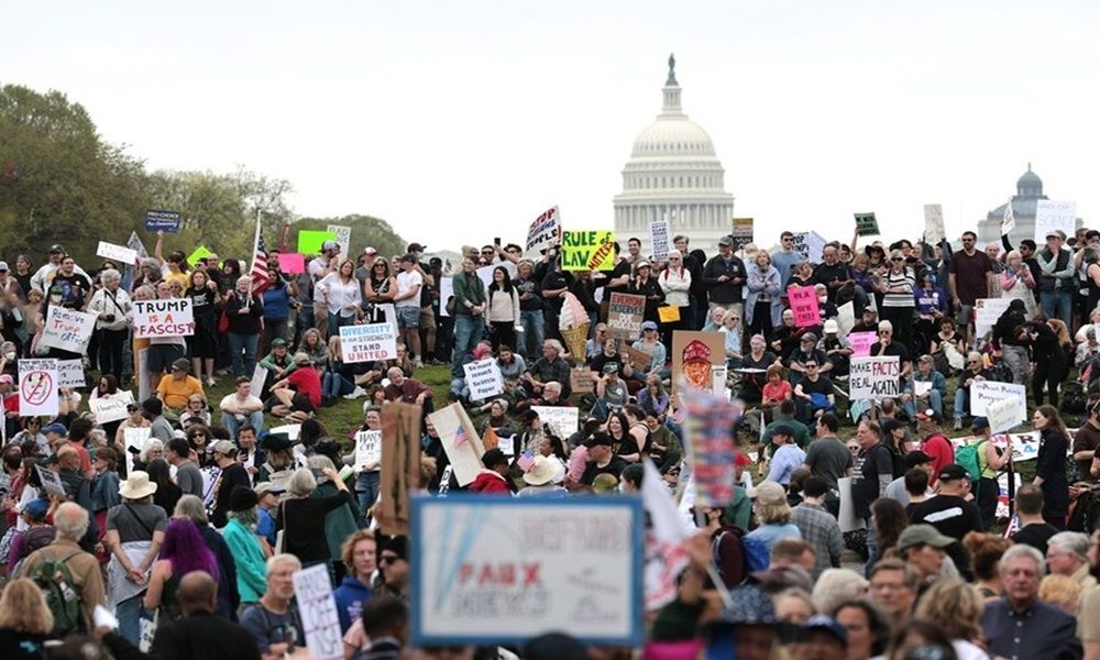 وتأتي التظاهرة في إطار فعاليات منسقة لحركة “لا للملوك” تجري في أنحاء الولايات المتحدة في يوم العرض العسكري المخطط له في واشنطن وعيد ميلاد ترامب، (العرض العسكري في العاصمة الأميركية يتزامن مع عيد ميلاد ترامب التاسع والسبعين).