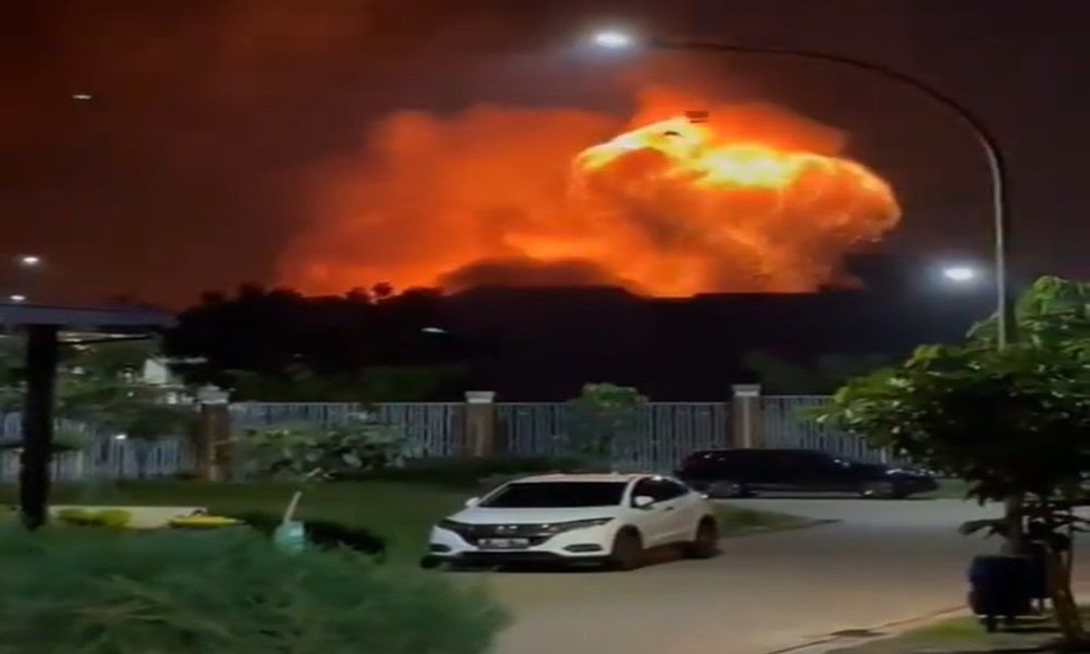وارتفعت ألسنة اللهب والدخان الكثيف والألعاب النارية الحية في الهواء، في عرض ناري فوضوي شوهد على بعد أميال.