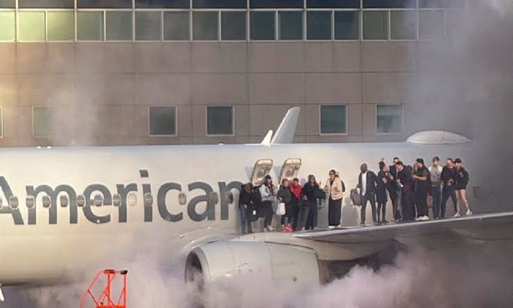 بالفيديو: حريق وذعر بين ركاب طائرة قبل إقلاعها