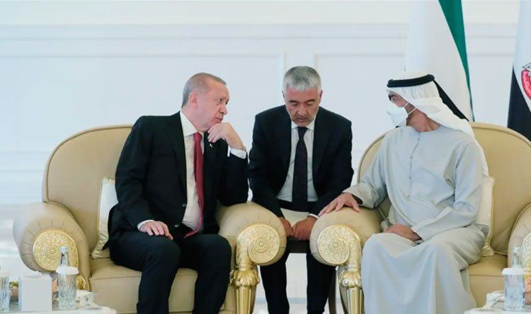 استقبل رئيس دولة الإمارات الشيخ محمد بن زايد، اليوم الثلاثاء، نظيره التركي رجب طيب أردوغان في العاصمة أبو ظبي لتقديم واجب العزاء بوفاة الرئيس الراحل الشيخ خليفة بن زايد آل نهيان.