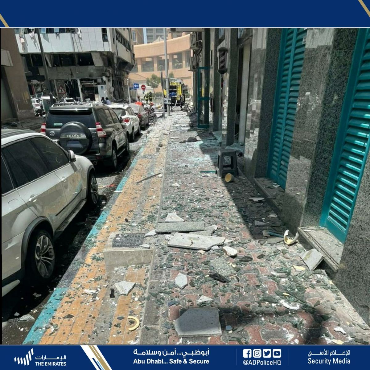 وبعد ساعات، نشرت شرطة أبوظبي صوراً لزجاج مكسور في الشارع وركام متناثر على طول الرصيف.