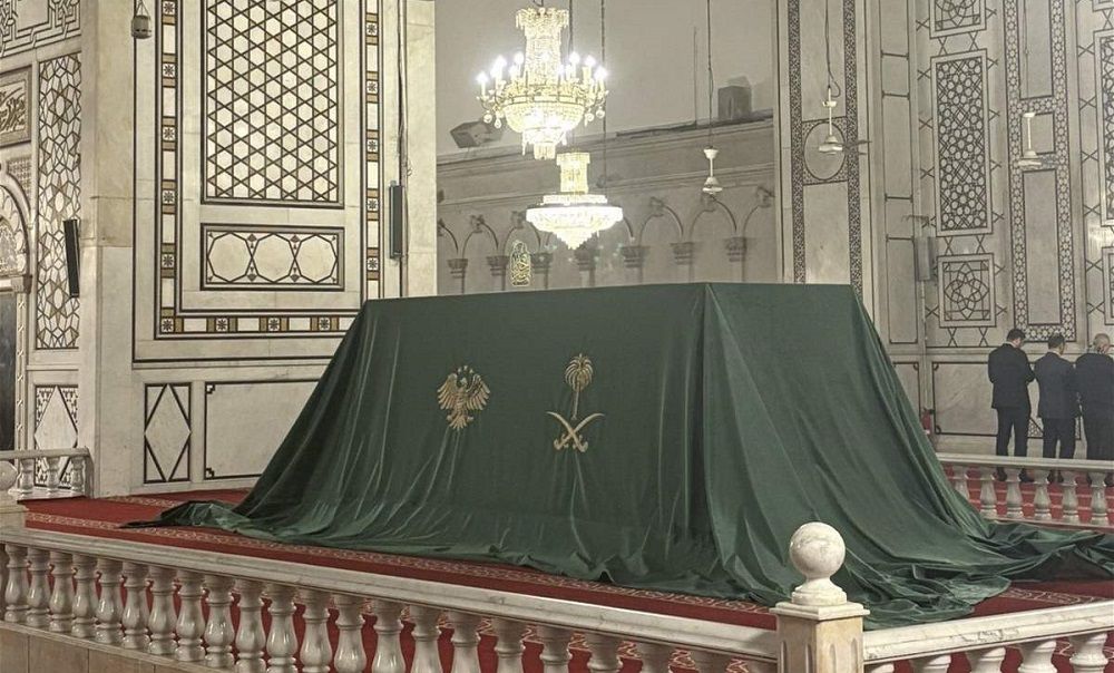 انتشرت على مواقع التواصل الاجتماعي صورأً لصندوق غامض مغطى بغطاء أخضر يحمل شعار المملكة العربية السعودية وسوريا ومحاط بحراسة كبيرة ومشددة داخل الجامع الأموي في دمشق، ما أثار حيرة كبيرة وتساؤلات حول سبب وجوده هناك.