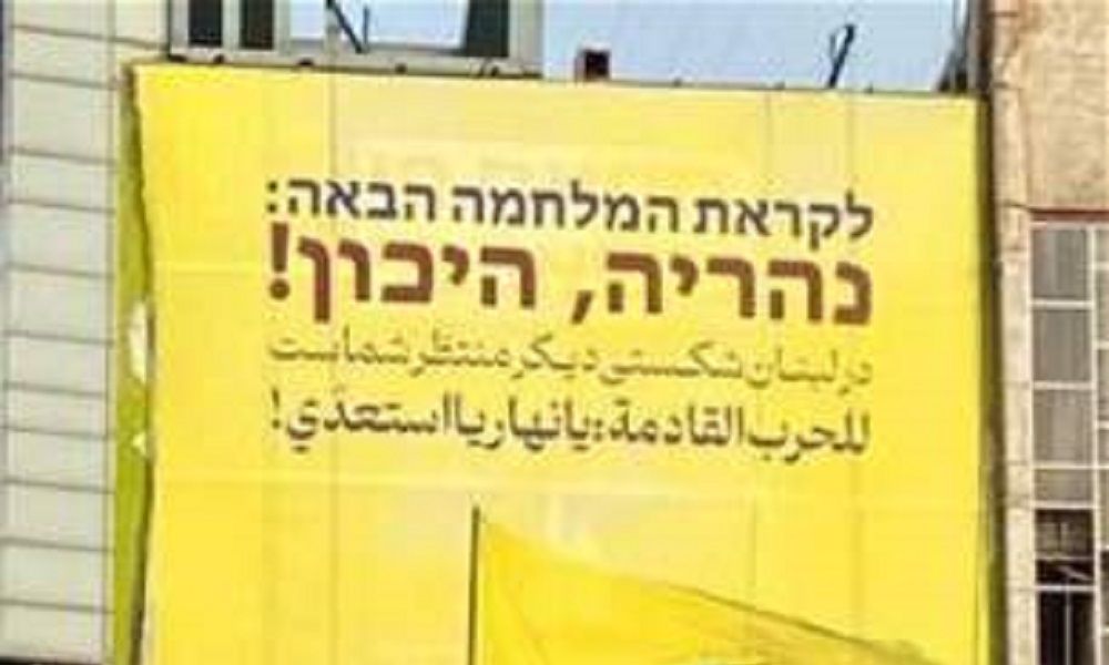 وتختطب الجدارية إسرائيل بعد تهديداتها لـ”حزب الله”. وكُتب عليها: “هزيمة أخرى تنتظركم في لبنان.. يا نهاريا استعدي: للحرب القادمة!”.