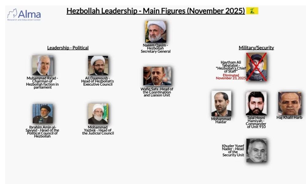 ويظهر على الصورة المنشورة، علامة “x” على صورة رئيس الأركان السابق في الحزب هيثم الطّبطبائي والذي اغتيل باستهداف في 23 تشرين الثاني في الضاحية الجنوبية لبيروت.