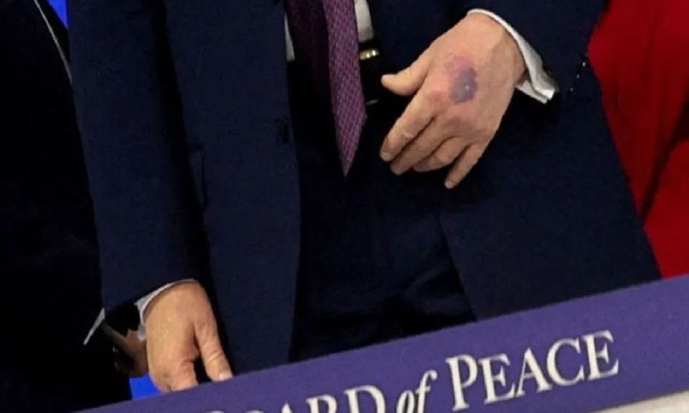 وظهر الرئيس الأميركي مجددًا وهو يعاني من كدمة زرقاء واضحة في يده اليسرى، امتدت من مفصل الإصبع الأوسط وصولًا إلى قاعدة الإبهام.
