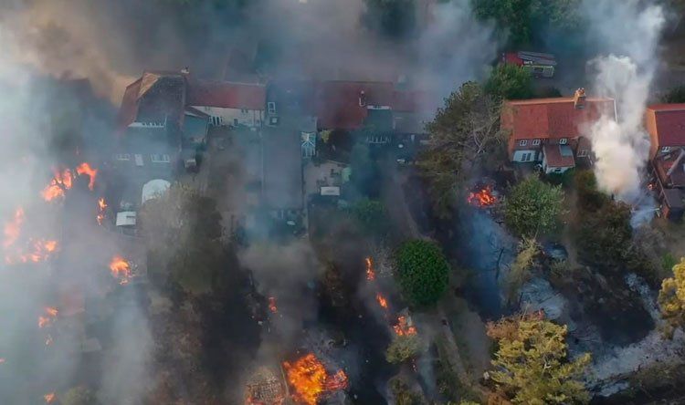 وأظهر مقطع فيديو من منطقة داغينهام مشهدا وصفته صحيفة “ديلي ميل” بالمشابه لـ”حالة ما بعد نهاية العالم”، بعد حريق دمر عددا من الممتلكات.